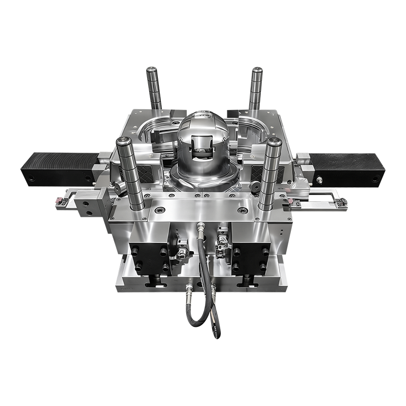 | Mechanizmy rdzeniowe z wieloma prowadnicami | Hydraulicznie napędzane suwaki boczne do skomplikowanych podcięć (otwory wentylacyjne, szczeliny wizjera i punkty mocowania) | Umożliwia formowanie skomplikowanych geometrii kasku bez obróbki końcowej; zapewnia czyste i precyzyjne wyjmowanie z formy |