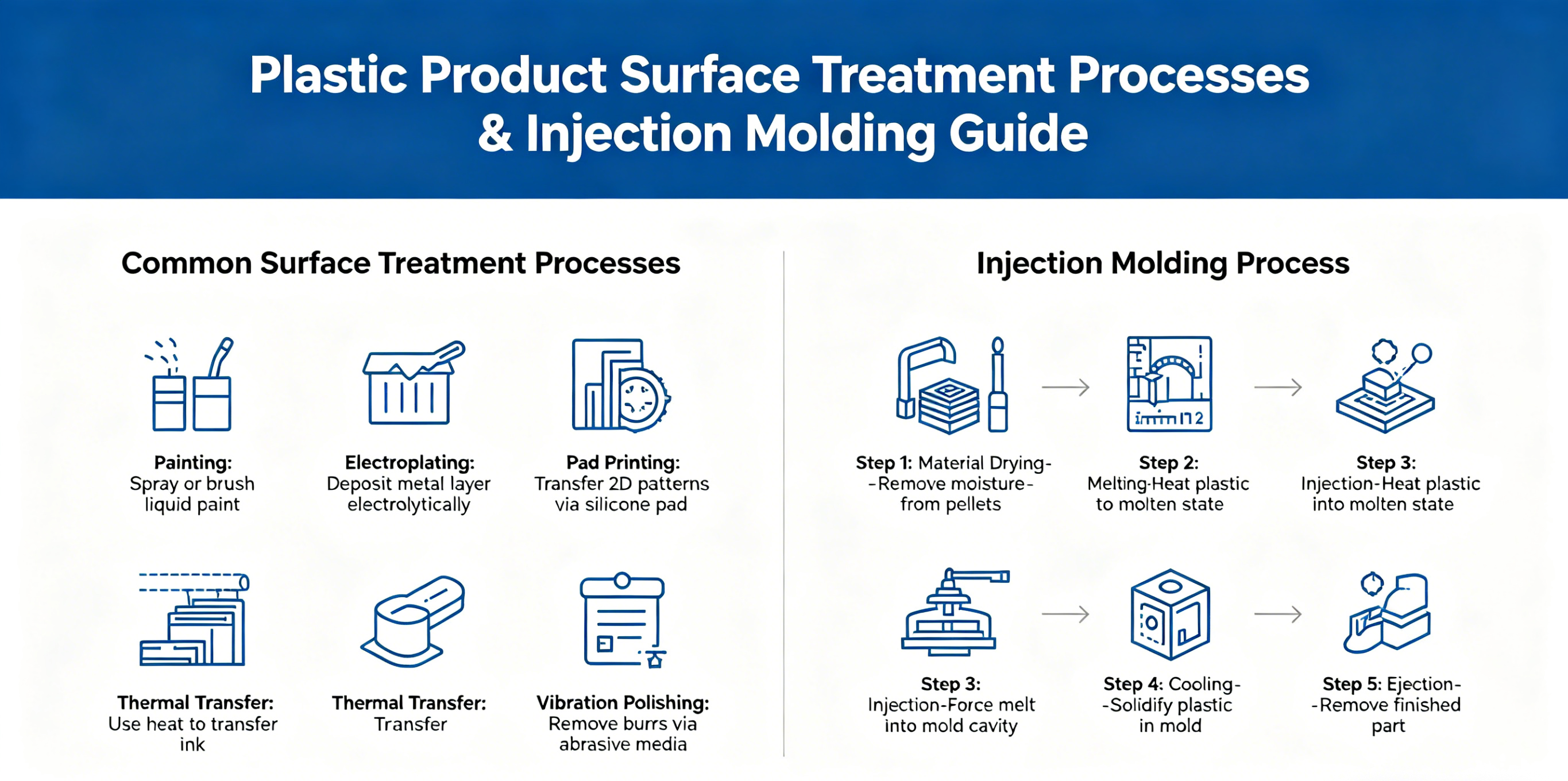 Wybór odpowiedniej obróbki powierzchni produktu z tworzywa sztucznego zależy od Twoich celów — niezależnie od tego, czy chodzi o estetykę, funkcjonalność, koszt czy wielkość produkcji. Najlepsza część? Optymalizując proces formowania wtryskowego i projekt formy, możesz uzyskać większość wykończeń bezpośrednio podczas formowania, oszczędzając czas i zmniejszając ilość odpadów.